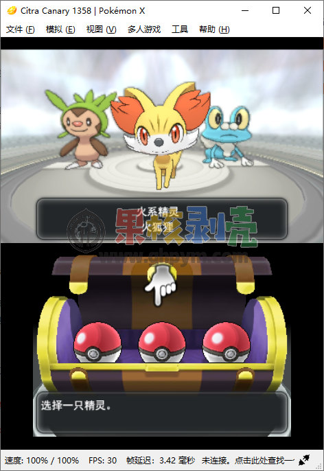 需要下载网上的ROM游戏载入,提供一个口袋妖怪X供测试