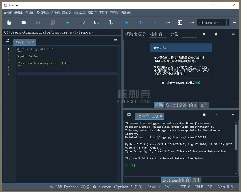 而且Spyder的界面简便易用,每一个会使用Python的用户都能够轻松使用,你可以根据自己的喜好调整窗格的位置和大小。并且在多个窗格出现在一个区域时,能将使用标签页的形式显示。