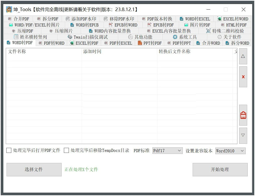 坤_Tools是一款功能强大的文档编辑工具,它提供了多种实用的功能,包括Word转PDF、PDF转Word、替换内容、转换图片、合并图等等。这个工具的设计目的是通过一个软件解决多个场景的问题。这个软件完全离线使用,并且完全免费。
