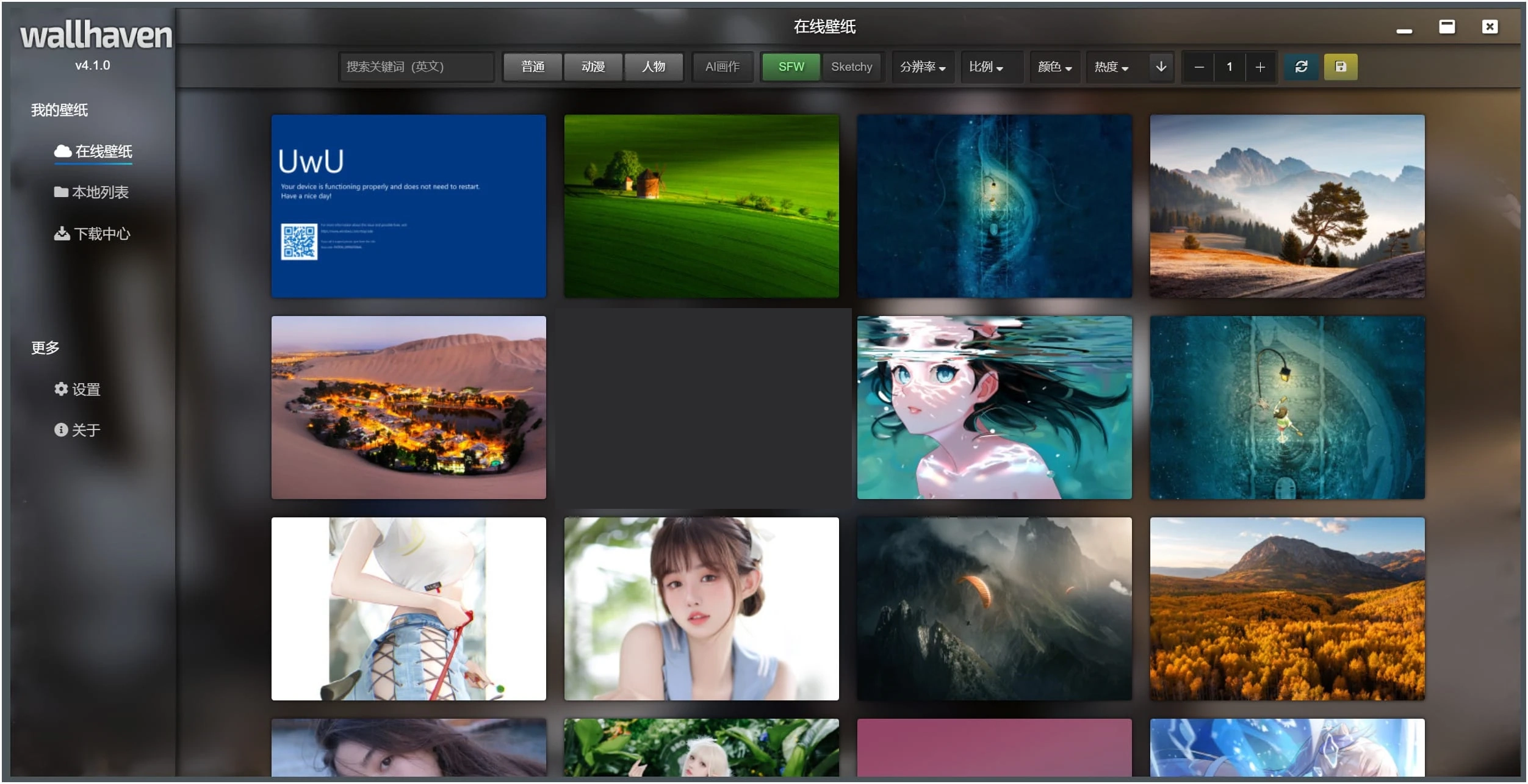 Wallhaven是一个基于wallhaven.cc的一款壁纸管理工具。Wallhaven的最大特点是其高质量的壁纸。所有的壁纸都是由专业的设计师上传的,因此质量都非常高。此外,Wallhaven还提供了多种搜索方式,用户可以根据自己的喜好来搜索壁纸。例如,用户可以通过颜色、主题、分辨率等条件来筛选壁纸。