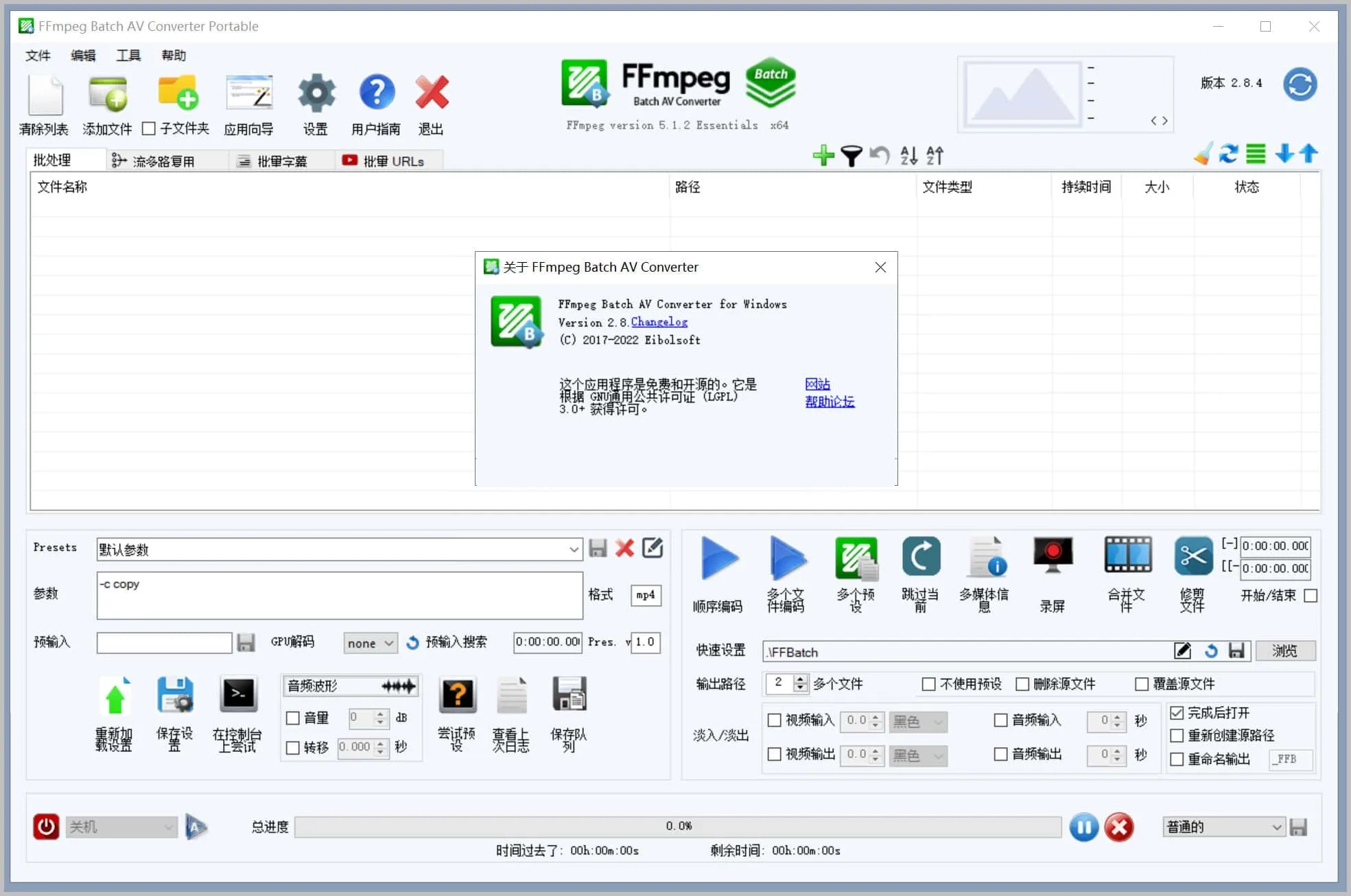 Fmpeg Batch AV Converter是一款免费的通用音频和视频编码器,只需单击几下鼠标,即可在拖放式进度信息的便捷GUI中使用ffmpeg命令行的全部功能。 由于具有多文件编码功能,它可能是可用的最快的a / v批处理编码器,因为它通过启动多达用户CPU线程数的多个并发进程来最大限度地利用系统资源。