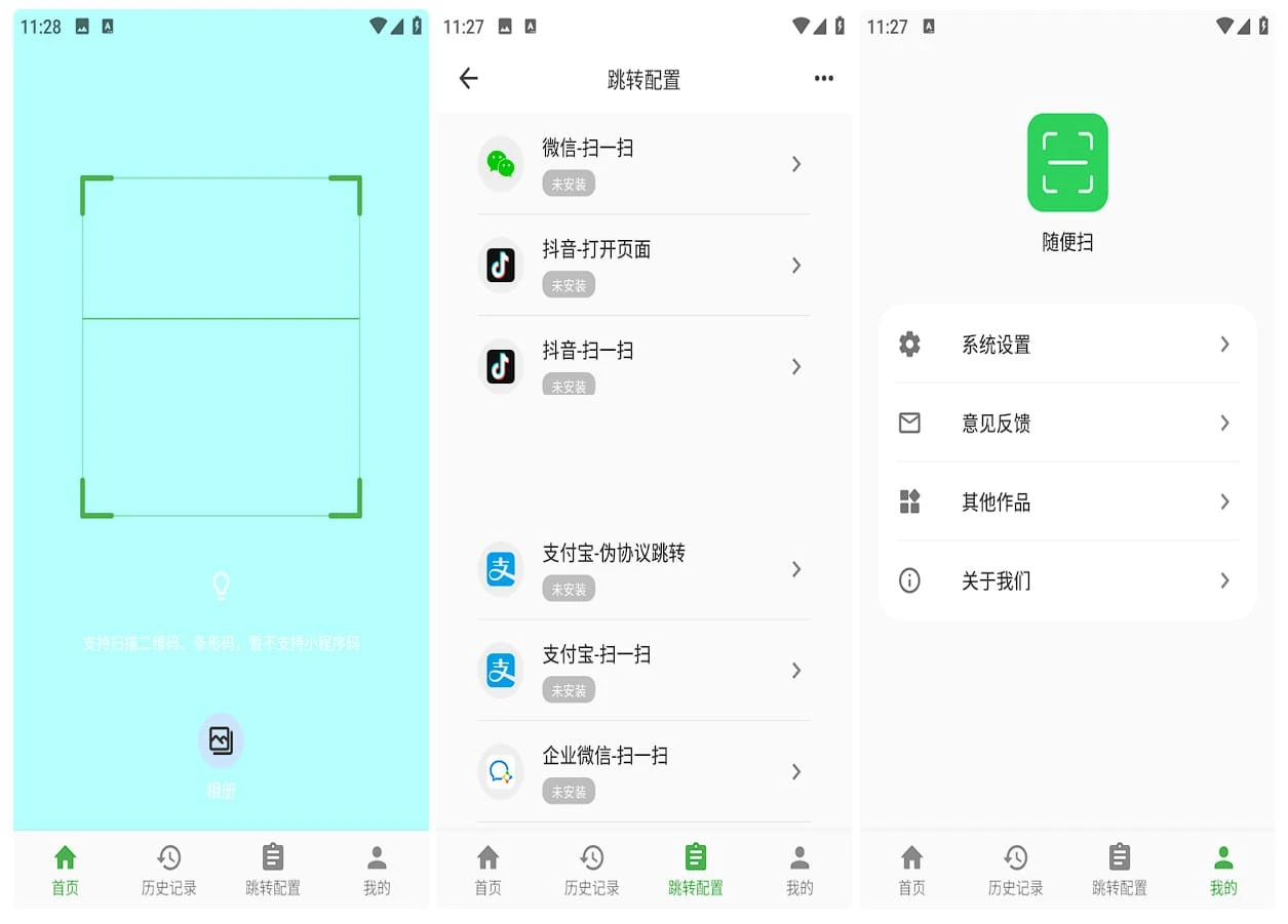 “随便扫”是一款智能化的二维码扫描跳转工具,能够根据扫描结果自动打开匹配的应用。在日常生活中,常常需要使用各种不同的应用来扫描二维码,这就需要不断在各个应用之间切换,寻找各自的扫一扫功能。而”随便扫”它能够智能识别扫描的二维码结果,并根据结果自动跳转到相应的应用进行处理,无需用户自己去寻找各个应用的扫一扫功能,大大提高了扫描二维码的效率。此外,”随便扫”还支持用户自定义链接跳转规则,用户可以自行配置 URL Scheme 来跳转到指定的 App 页面。