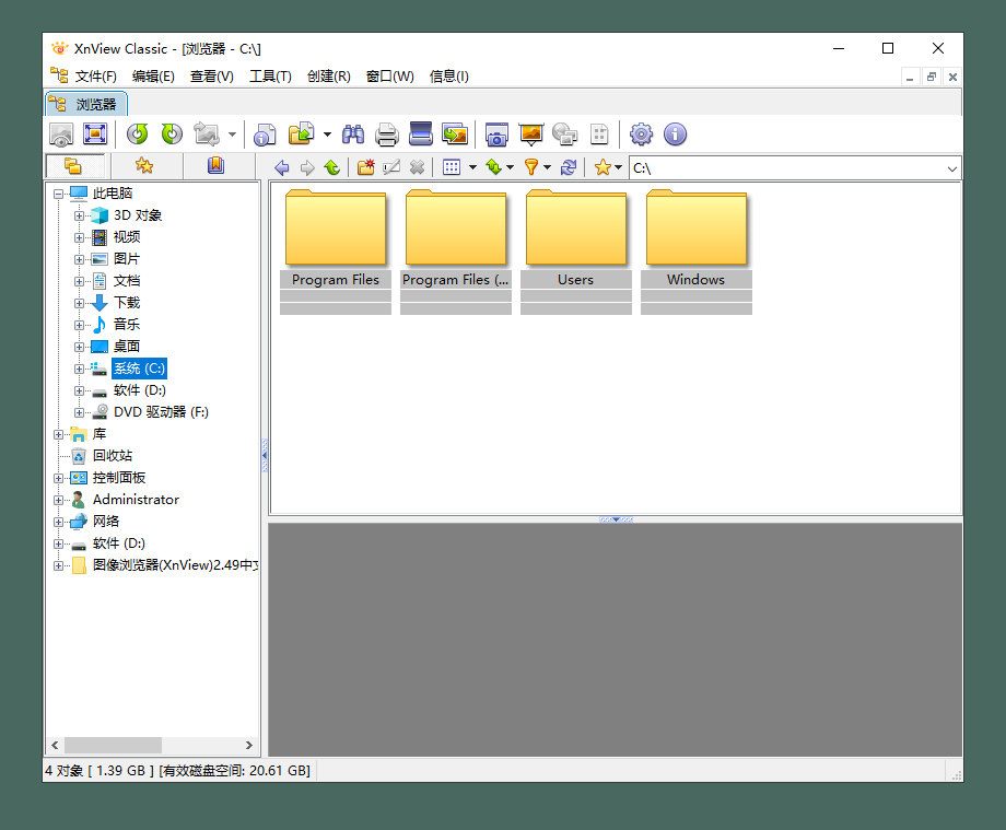 经典实用看图浏览/管理/转换工具 XnView 是一个图像浏览器和多媒体播放器。它能够支持大约400种文件格式(比如说ping、jpeg、targa、tiff、gif、bmp等)。XnView同时还支持动画gif、多页面tiff、多图像图标以及mpeg、avi、wav、aiff和Quicktime格式的文件。此外,XnView还具有浏览器、幻灯片、屏幕捕捉、缩略图制作、批处理转换、十六进制浏览、拖放、通讯录、扫描输入等功能。该软件支持43种语言,并能够在Linux/FreeBSD/Irix/Solaris/HP-UX/AIX等操作系统中使用。 XnView 除了一般的查看、浏览、幻灯显示等功能外,还自带多种滤镜,方便编辑修改;可以批量转换文件格式,创建缩略图并生成网页,还可自己制作GIF,小巧实用。 选择安装“资源管理器右键菜单扩展插件”,可在资源管理器右键菜单中增加图片预览功能!