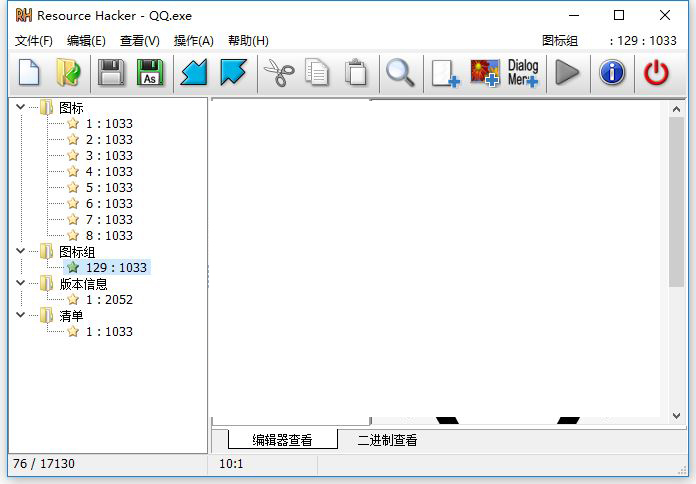 图标、位图、指针、菜单、对话、字符串表、消息表、加速器、Borland 窗体和版本信息资源都可以完整地反编译为其各自的格式,不论是作为图像还是作为 *.rc 文本文件都可以。
