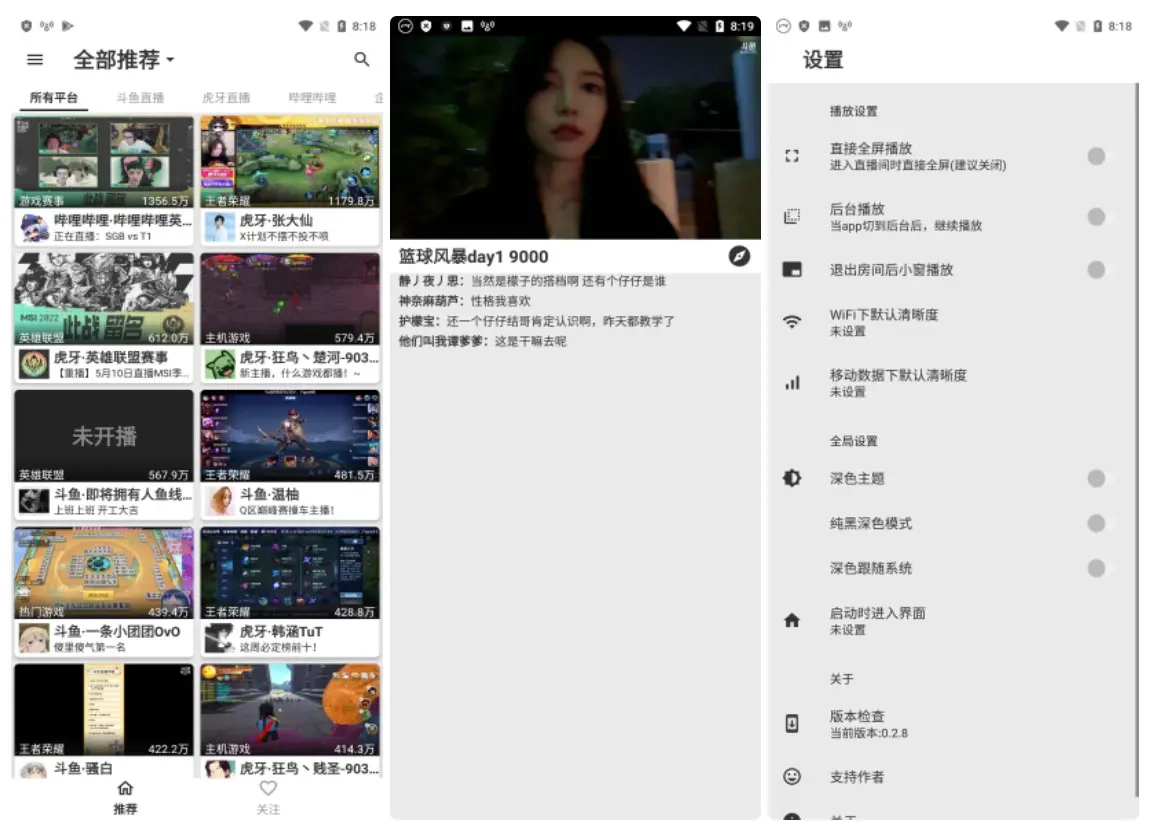 大家可以5大平台无缝切换,也意味着只要是这5个平台所包含的主播和直播间,在这里就都能看。