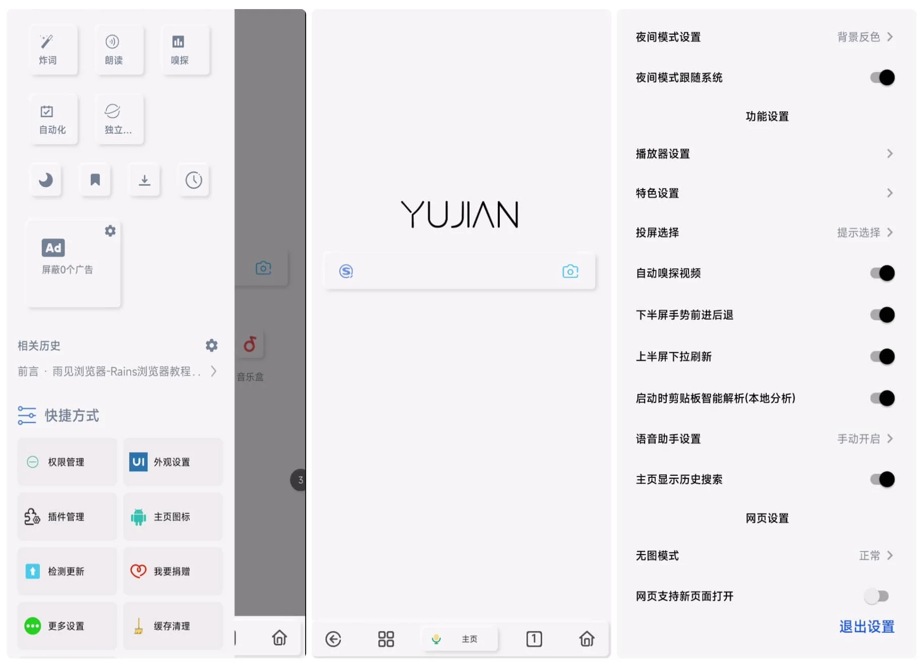多功能体验是我们一直致力于追求的。拥有多样的浏览器脚本、便捷的内核切换、全功能的播放器体验、高度自定义的主页、全面的手势操纵。