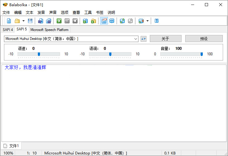 Balabolka使用微软的语音API(SAPI中)的各种版本,它可以改变语音的参数,包括速度和间距。用户可以应用特殊的替代清单,以提高语音的清晰度质量。