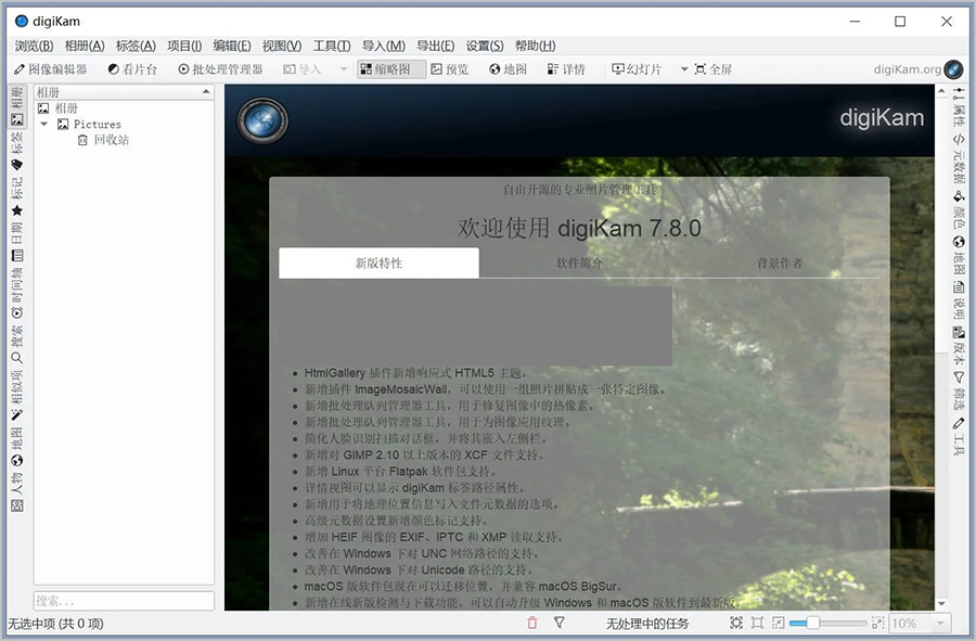 DigiKam 是一款功能先进的自由开源数字照片管理程序,包含了对照片和 RAW 图像文件进行导入、管理、编辑和分享的全套工具,支持 Linux、Windows 和 macOS。