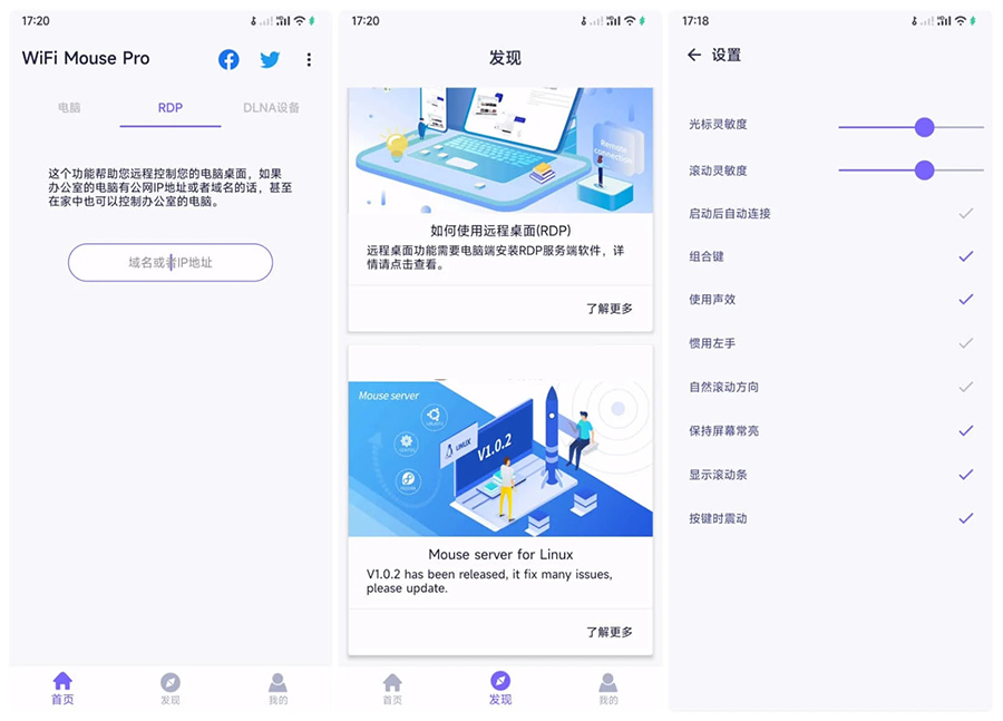 支持语音到文本以及多指触控板手势。可让您毫不费力的使用您的手机或平板电脑控制您的PC,MAC或HTPC。软件使用非常简单,先在手机上安装好,然后在电脑端安装对应软件连接即可使用。
