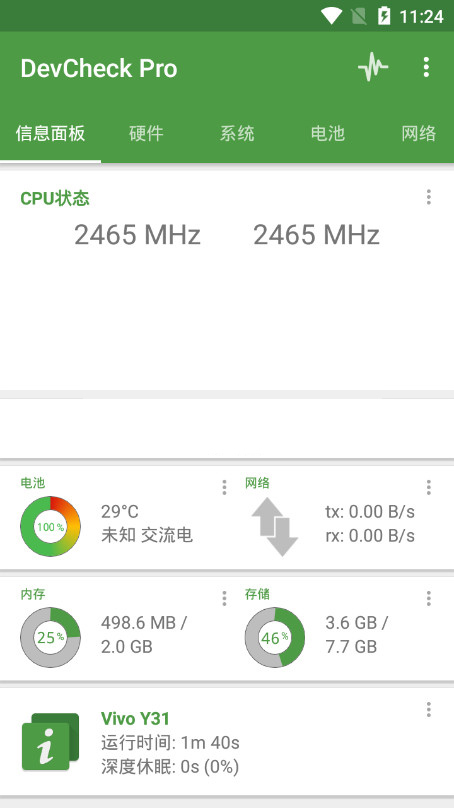 DevCheck是一个硬件信息检测软件,和AIDE64以及CPU X类似,显示您的设备,硬件和操作系统信息。它是目前最全面的系统信息的应用程序。