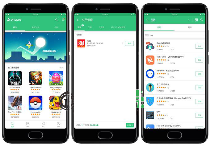 APKPure是一款第三方的谷歌市场,它能让你在不使用爬山工具的情况下下载谷歌市场的软件。功能全面,和使用大多数的应用市场方法一样,支持软件更新提示,并且很多国内没有的软件,上面都可以搜索到。