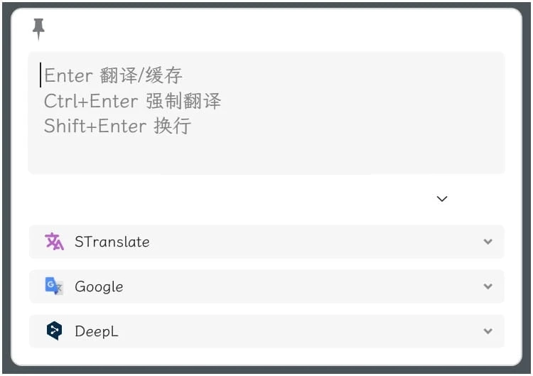 多种翻译源支持:Deepl(免费版本)、Google(免费版本)、OpenAI、Gemini、百度翻译、阿里翻译、腾讯翻译、小牛翻译、微软翻译、有道翻译、彩云小译、火山翻译、智谱AI