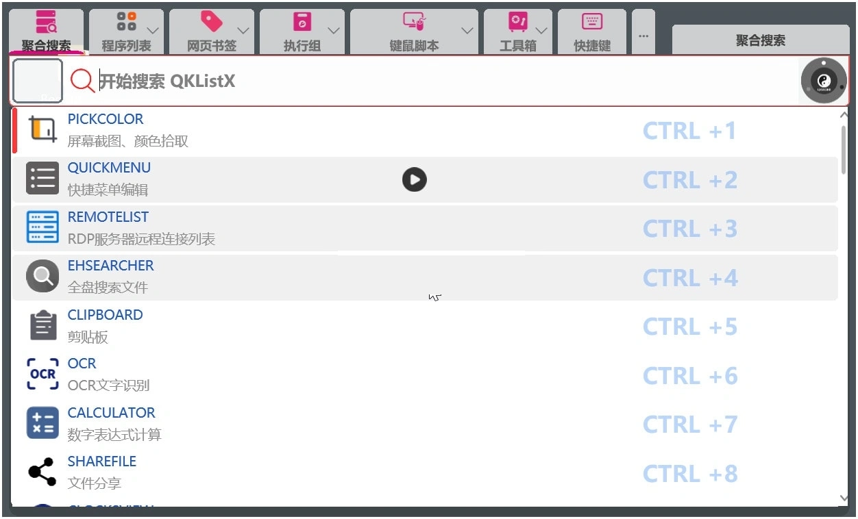 QKlistX作为一个效率工具,定位为一个快速启动的工作平台,它可以帮助快速查找所需的软件、网址、运行组和脚本,并进行快速运行。同时,它还提供定时功能,可以定时运行程序和脚本,让工作更加高效。