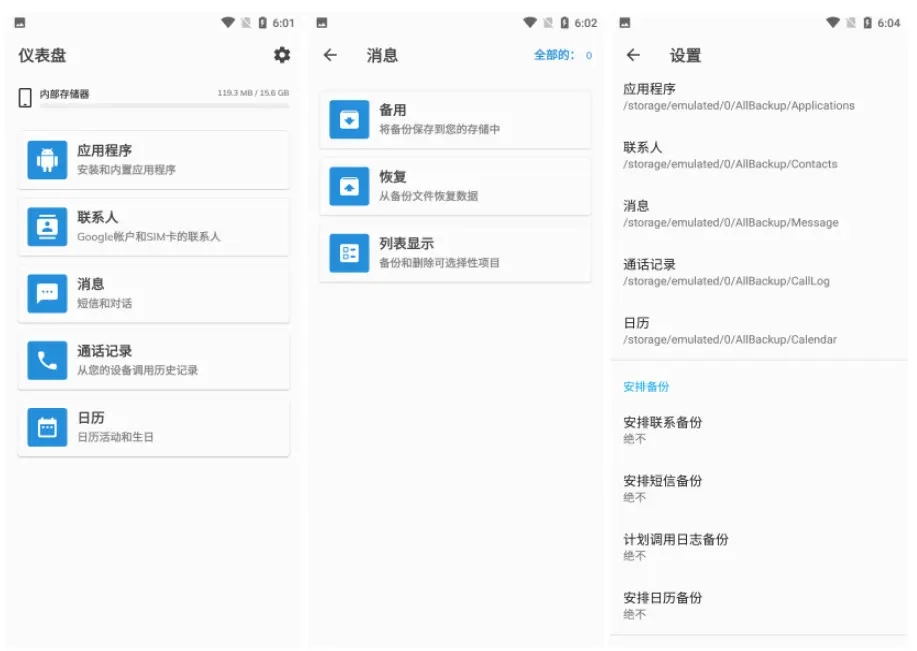 All Backup & Restore 可以将应用程序、联系人、短信、通话记录和日历备份和恢复到内部存储。如果打算在手机上进行恢复出厂设置或要更换手机,请在执行此操作之前确保默认备份文件夹在外置 SD 卡中。如果没有,请将整个备份文件夹(默认为“AllBackup”)复制到外部 SD 卡。