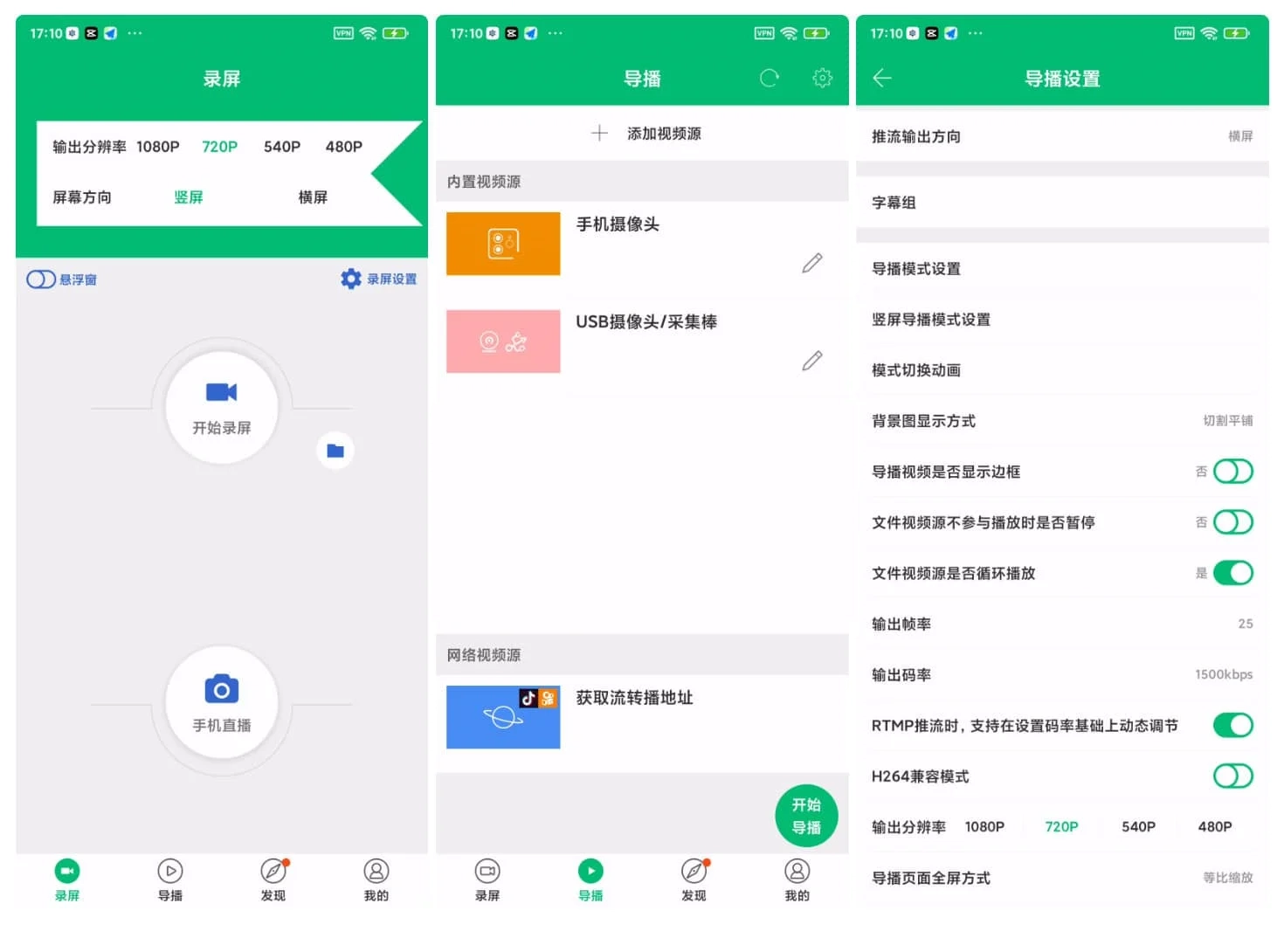 此外V导播录屏APP 用户还可自行填入推流地址后(比如熊猫,斗鱼等知名直播空间),即可进行直播。