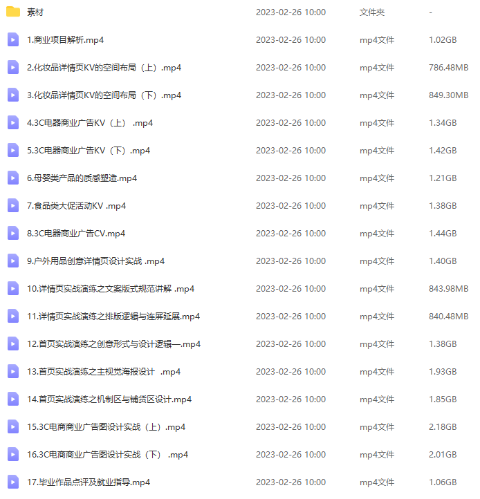 电商设计综合突破班第1期2021年7月结课【画质还行有部分素材】资源简介