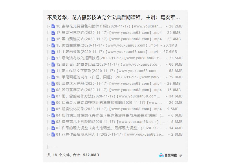 不负芳华,花卉摄影技法完全宝典后期课程,主讲葛宏军老师资源简介