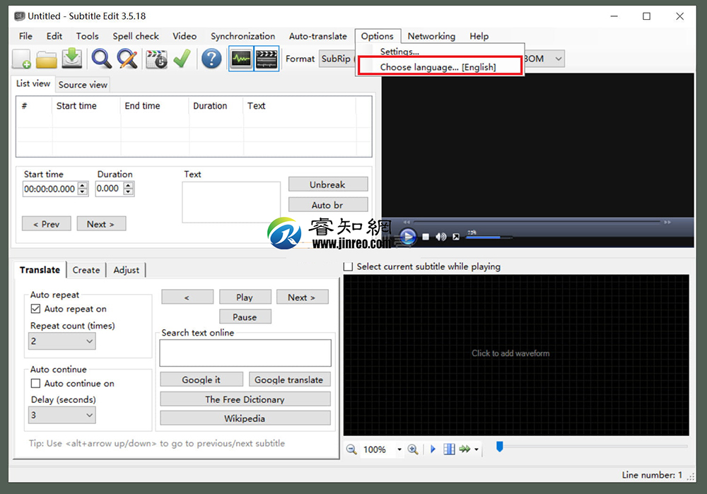 2、在SubRib,MicroDVD,高级子站Alpha,Sub Station Alpha,D-Cinema,SAMI,youtube sbv等等之间进行转换(200多种不同的格式!)