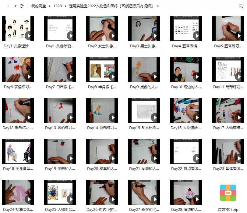 课程来自于 速写实验室2022人物色彩团练【画质还行只有视频】