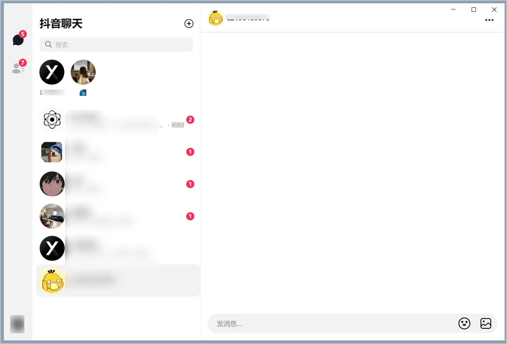 首次进“抖音聊天”,软件提示需要使用抖音App扫码登录,登录后就可以跟自己的抖音好友进行聊天。总体来看,“抖音聊天”的界面比较简单,整体布局类似微信电脑版,最左侧一览是聊天和好友列表界面切换按键,中间是好友栏,右侧是聊天框,支持添加朋友和发起群聊,好友聊天界面支持发送表情和图片,并且可在设置中对好友置顶、信息免打扰、拉黑和举报等。