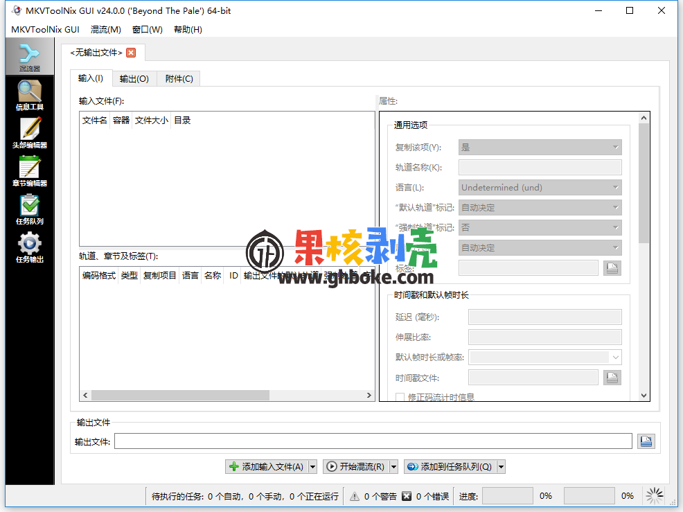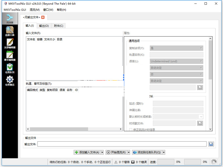 可创建章节并定义属性,如开始和结束时间、标志、段和段版本 UID、以及章节名称、语言和国家。可配置标签文件的全局设置、创建 WebM 兼容文件、分割模式、文件链接等。值得考虑的一个重要方面是 MKVToolnix 提供了对批处理作业的支持,这意味着当执行耗时任务时您可将工作站配置为无人值守。您可检查当前的命令行并将其复制到剪贴板或保存到文件中以便在将来的项目中使用,管理队列作业,添加命令行选项,从外部文件加载章节,编辑页眉以及将项目另存为 .mka、.mkv 或 .mk3d 格式的文件。