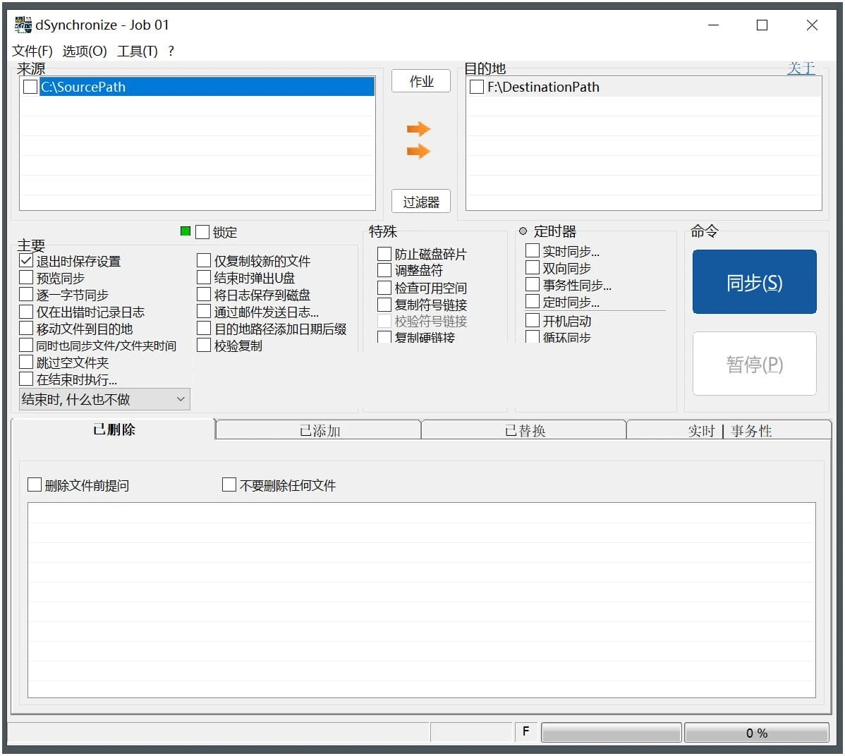 DSynchronize 是一个独立的实用程序,可定期同步硬盘、软盘、 LAN 、USB Key、CD-DVD 和 FTP 服务器上的两个或多个文件夹。