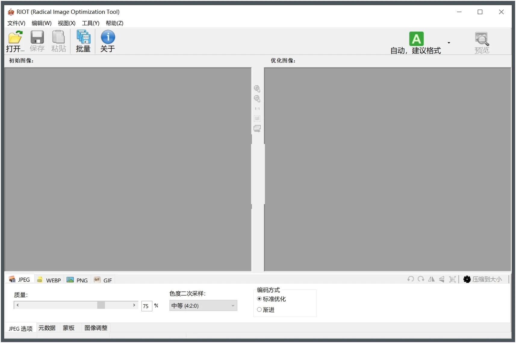 Radical Image Optimization Tool 是一款免费的图像优化工具,可以让您在保持最小文件大小的同时,在视觉上调整压缩参数。它使用并排(双视图)或单视图界面来实时比较原始图像与优化图像,并即时查看生成的文件大小。将能够控制压缩,颜色数量,元数据设置等等,并为您的输出文件选择图像格式(JPG,GIF 或 PNG)。