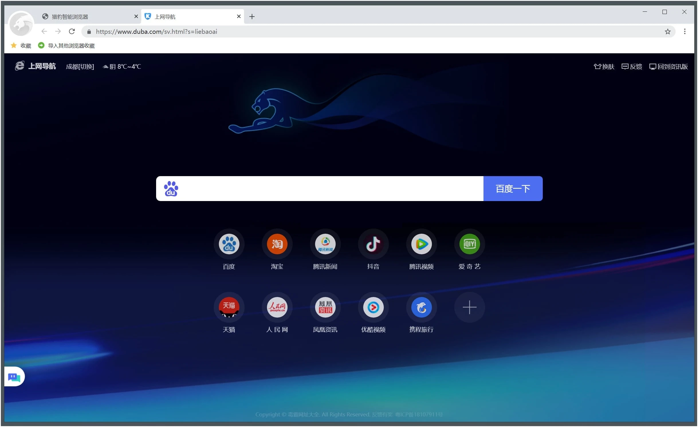 猎豹安全浏览器8是一款由猎豹移动公司推出的网络浏览器。它采用了Chrome内核,提供了快速、安全的上网体验。猎豹安全浏览器8还内置了广告拦截功能,可以有效阻止弹窗广告和网页广告,让用户的上网体验更加清爽。此外,猎豹安全浏览器8还支持多标签浏览,可以同时打开多个网页而不会感到混乱。这次还新增了AI聊天助手,AI小工具,网页全文总结等内容。