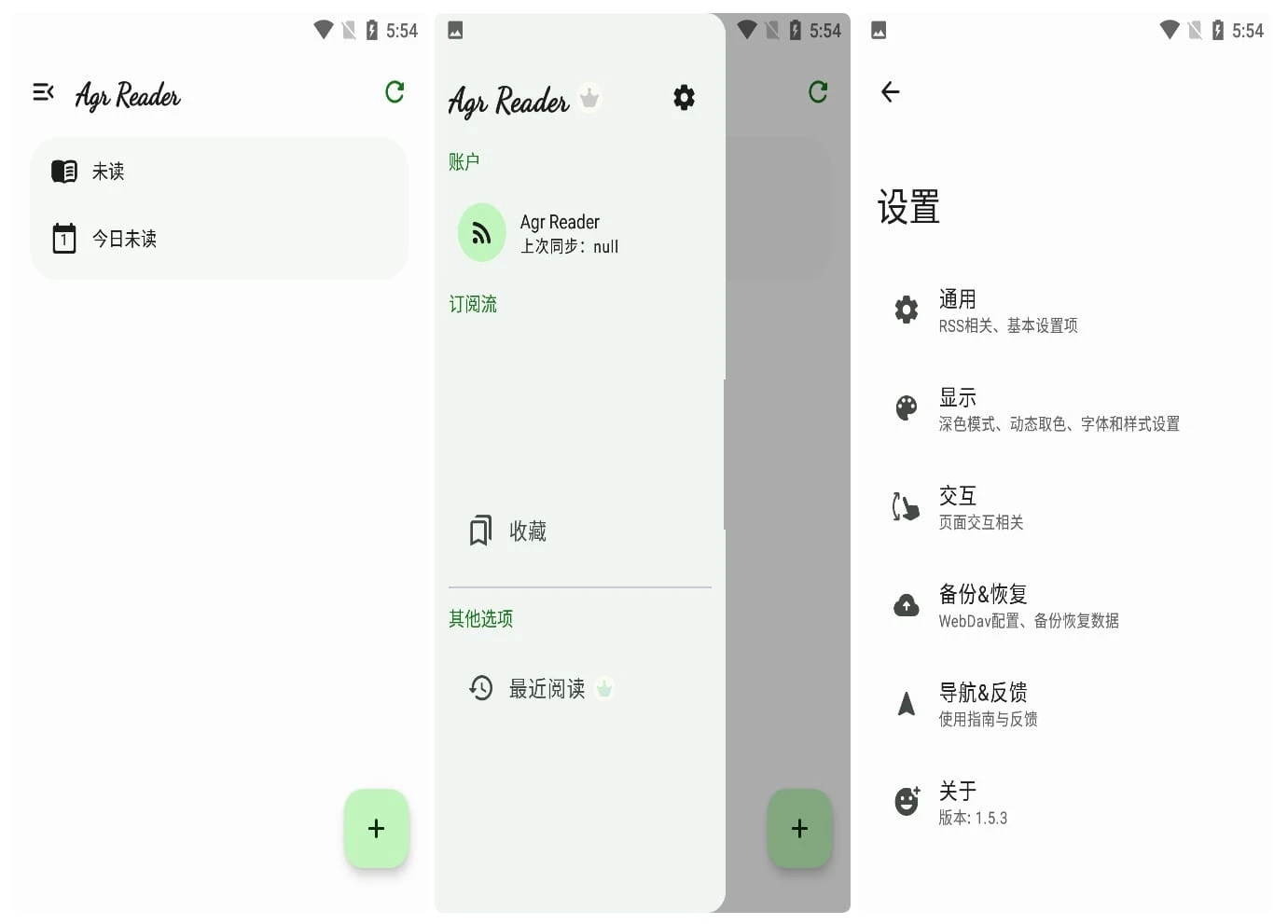 Agr Reader 是一款Material3风格的极简优美的RSS阅读器。可供自定义选择主题色,支持深色模式,以及各类Material3配色,完全遵循material3规范,壁纸动态取色当然也不落下,且支持直接设置颜色并自动应用契合Material3规范的强调色。