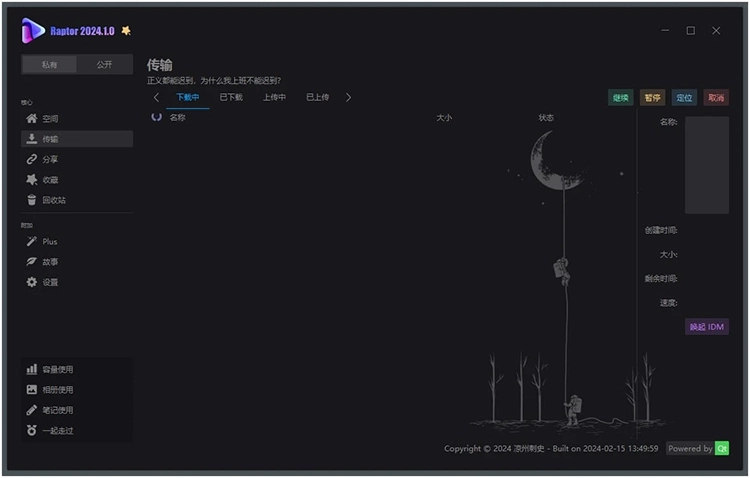 Raptor 是一款使用 Qt 和 C++ 构建的低内存、简洁和美观的第三方阿里云盘桌面应用客户端。Raptor 由 Qt5 驱动,与其他基于 Chromium 的解决方案(如 Electron)相比,这使得其 CPU 和内存使用较低。
