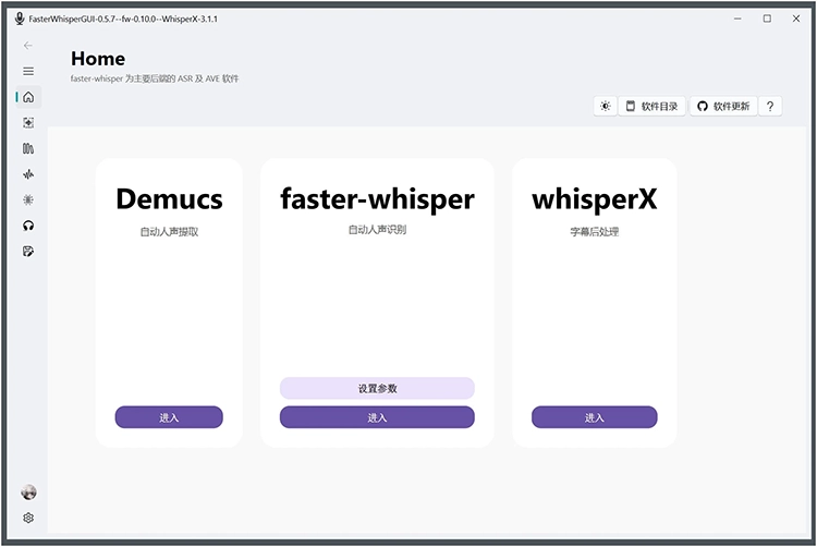 这是一款带有 PySide6 的 fast_whisper 的 GUI 软件,你可以将音频或视频文件转录为srt/txt/smi/vtt/lrc文件,将在线OpenAI-whisper模型转换为ct2格式,并且提供VAD模型和whisper模型的所有参数,目前支持whisperX,Democs 模型,whisper large-v3模型。