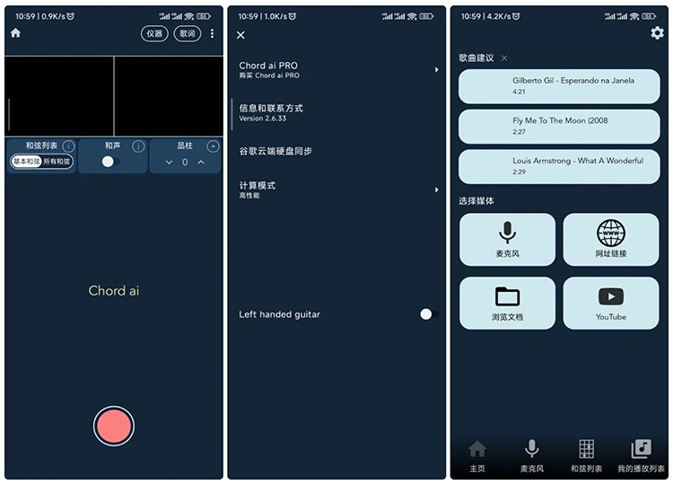 Chord ai 可以从您的设备、任何视频 / 音频流媒体服务或您周围的现场播放的音乐中收听音乐,并立即检测和弦。然后它会告诉你用吉他、钢琴或尤克里里琴弹奏这首歌的手指位置。