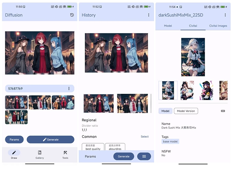 Diffusion 是一款强大的 stable-diffusion-webui 安卓客户端。它拥有文本到图像、修复图像、图像标签管理、模型管理等功能,你可以在电脑上创建好运行生图环境,使用这个软件在手机上连接,在手机上方便的进行后续操作。