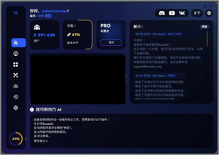 BoosterX 是一款系统优化工具,能够帮助用户从多个方面对电脑的系统进行深度的优化,帮助用户降低系统的延迟,提升游戏的fps,让游戏的玩家能够获取更好的体验。在这里提供了诸多的优化选项,你可以根据自己的喜好对不同的设置项目进行选择性的优化。