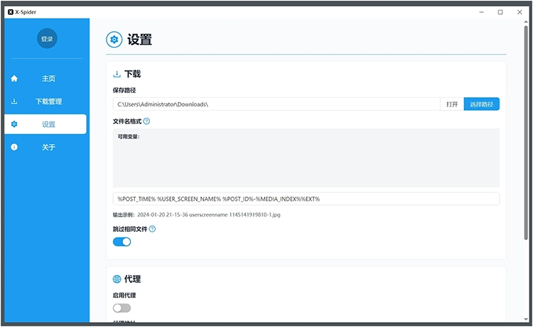 X-Spider 是一个功能丰富的推特媒体下载器,它不仅可以帮助用户从推特上下载图片和视频,还提供了一些高级的过滤功能。例如,用户可以通过指定日期范围来筛选需要下载的媒体文件,并且可以跳过已下载的重复文件,可配置文件名格式。X-Spider还支持Cookie登录,这意味着用户可以在自己的设备上保存登录信息。