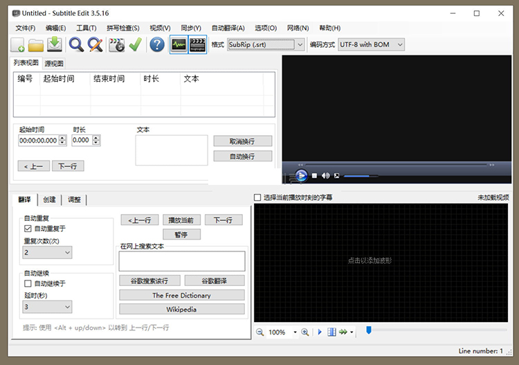 Subtitle Edit是一款简单好用的视频字幕编辑制作软件,现在大家都会自己拍摄或者制作一些视频,字幕作为一个点睛之笔通常是少不了的,一个好的字幕编辑软件能够事半功倍,Subtitle Edit可以快速编辑制作字幕,可以通过多种方式轻松调整原有 的字幕,支持从头开始自己添加创建调整字幕行,可使用时间线/波形/频谱图等,或者是进行字幕翻译添加,界面非常简单直观,使用起来也很轻松。