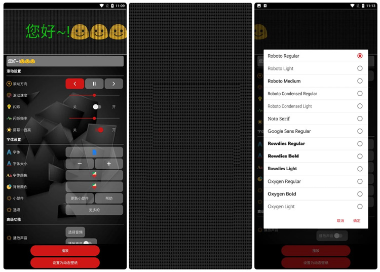 不仅可以切换选框的背景颜色以获得所需的美感,还可以让您的LED横幅以您想要的频率闪烁。它可以将你的横幅转换为桌面动态壁纸和锁屏动态壁纸。还可以创建手机桌面组件,让滚动文本始终显示,确保信息永远在视线范围内。