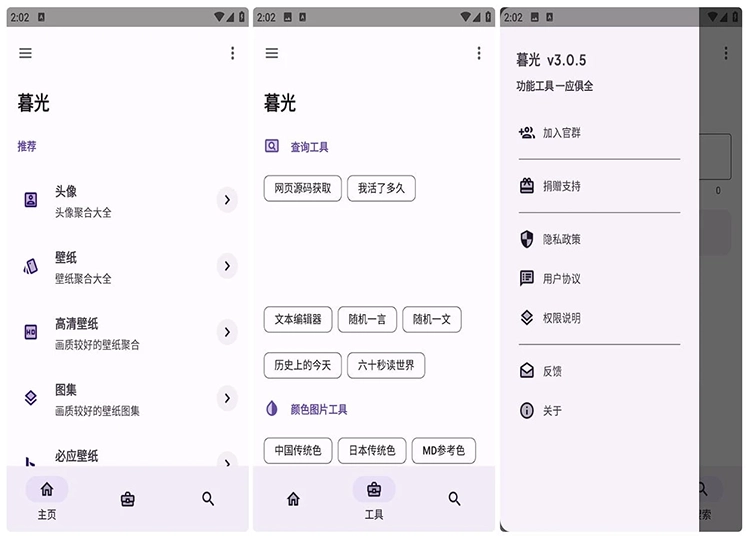 暮光APP是一款多功能的工具箱应用,它提供了丰富的功能来满足用户的不同需求。它拥有各种精美的高清壁纸,包括头像、壁纸和图集。你可以根据自己的喜好和需求选择适合的壁纸,并将其设置为手机的背景,为你的设备增添个性和美感。它还提供了短视频解析、查询工具箱、文本工具和颜色图片工具等多种实用功能。