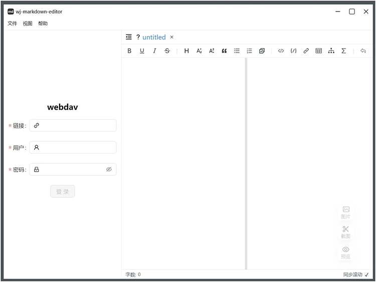 Wj-Markdown-Editor 是一款支持webdav的开源桌面端markdown编辑器。软件支持本地MD文件打开,并且支持图片粘贴上传、截图上传等,细粒度控制图片保存方式,可提取目录,还有导出PDF等功能。是一款简单实用的markdown编辑器。