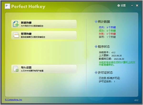 Perfect Hotkey 是一个功能强大的 Windows 系统热键管理实用程序。Perfect Hotkey 可隐藏程序和窗口,立即关机,重启或注销,插入预制消息,打开无限量的网站、程序、游戏、文件、文件夹、驱动器等。所有功能均通过您的键盘实现。