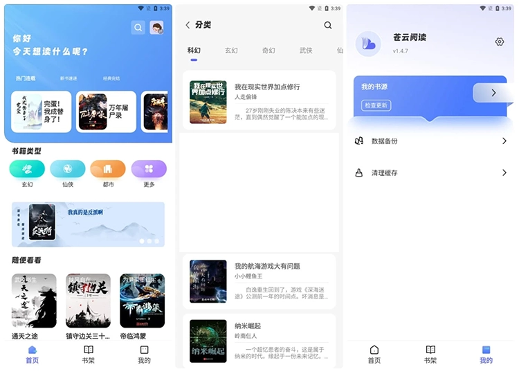苍云阅读APP 作为一款新兴的免费小说阅读平台,为广大书迷们提供了一个丰富多彩的文学世界。这款软件以其独特的魅力,迅速吸引了众多爱好阅读的用户。它涵盖了多种类型的书籍,包括但不限于玄幻、仙侠、武侠、科幻等热门题材,满足了不同用户的阅读口味和需求。在苍云阅读APP的首页,用户可以发现精心挑选的书籍推荐,这些推荐根据用户的阅读习惯和偏好进行智能匹配,确保每位用户都能第一时间找到自己感兴趣的内容。