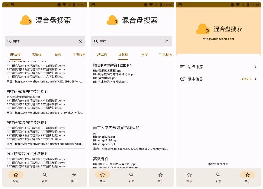 混合盘是一款安卓APP,可从数十个网盘搜索网站中检索出你需要的资源。这全部是免费的。