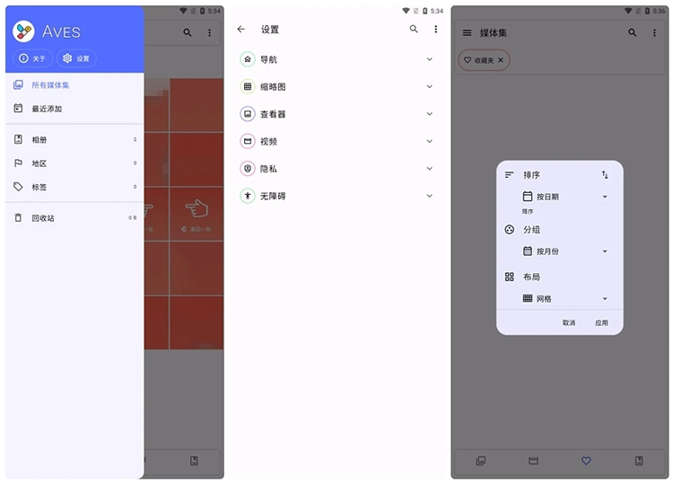 Aves 是一款开源的安卓相册应用,集成了 EXIF 原数据浏览,支持众多图片、视频格式,包括一些比较少用到的格式,比如 TIFF、SVG、旧版本的 AVI 等,支持动态图片、360 视频、全景图,以及 GeoTIFF 等。Aves 提供了简单快速的分类功能,可以快速找到需要的图片,默认会以很多类别进行分类,包括格式、日期、地理位置、国家和地区、标签、评分。