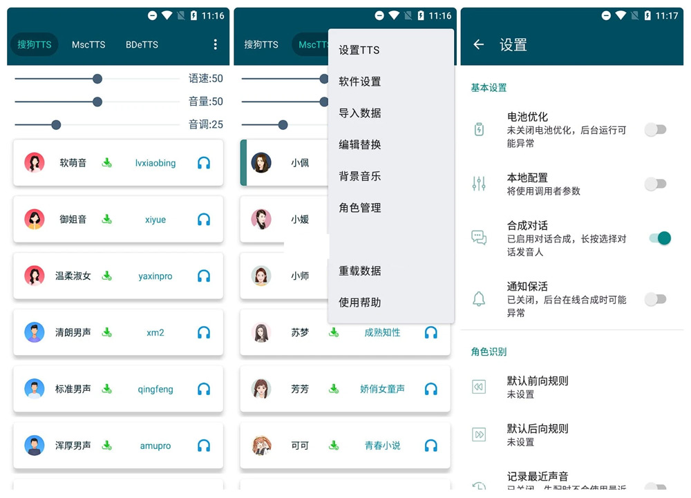 角色管理:添加规则,识别朗读文本中的角色,并用指定的发音人进行朗读。