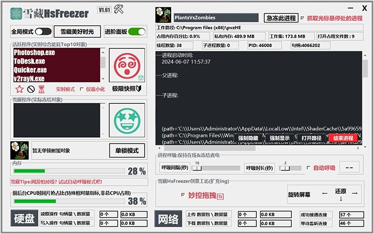 HsFreezer 是一款让你可以随心冻结游戏的软件(游戏暂停软件、系统优化软件、进程管理软件),想玩就玩,想停就停,快捷键随心瞬发,单锁模式极致的丝滑切换,当然,不止适用游戏。更有丰富的特色系统优化功能。