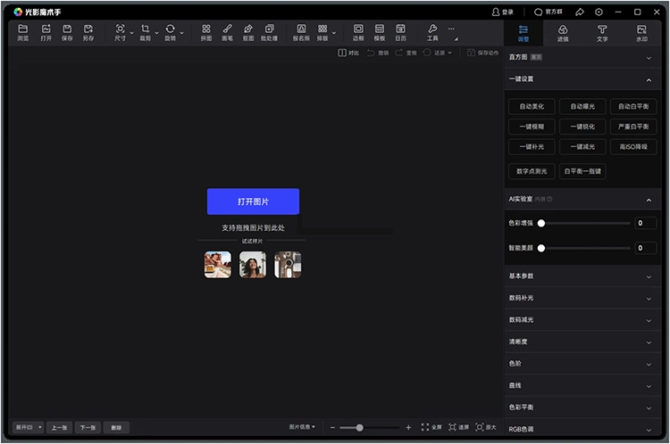 光影魔术手 是一款专注于图像画质优化和效果处理的软件,它以简单易用著称,使得用户无需掌握专业的图像技术即可制作出具有专业胶片摄影色彩效果的图片。软件拥有众多独特功能,如反转片效果、黑白效果、数码补光、冲版排版等,能够满足用户在后期处理摄影作品、快速美化图片、整理数码照片冲印等方面的需求。其批量处理功能更是强大,能够大幅提升工作效率。