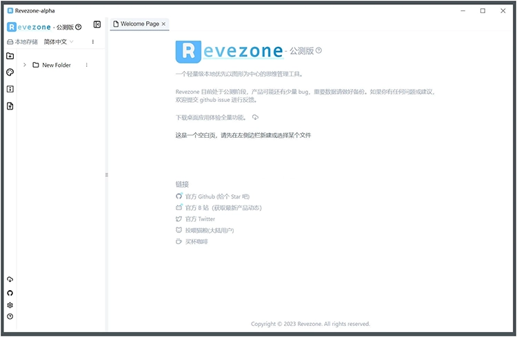 Revezone 是一款以图形为中心、轻量级、本地优先的用于构建第二大脑的效率工具。你可以在 Revezone 中以更简单的姿势使用 Excalidraw 功能,可以在桌面应用中自定义字体,也可以通过双链功能有效连接 Revezone 中的笔记。Revezone 中的笔记是一个所见即所得的类 Notion 编辑器,支持 ‘/’ 命令和 Markdown 语法。你可以在左侧边栏创建和管理文件夹、笔记和画布,右键使用具体功能菜单。