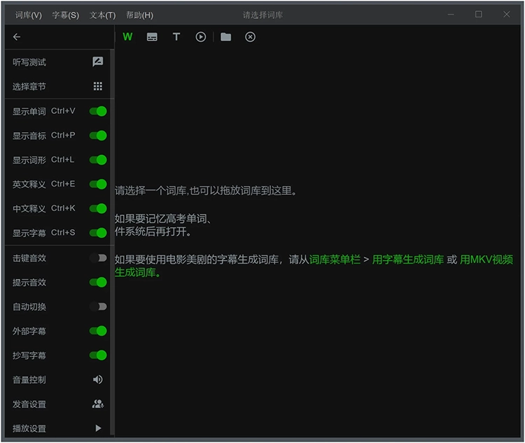1.用 MKV 格式的电影、电视剧生成词库(单词本),让每个单词都有具体的语境。