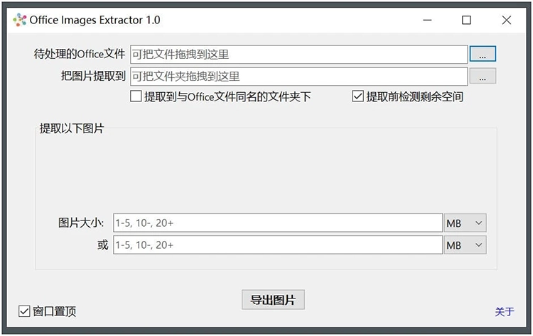 5. 支持文件(夹)拖放:把文件(夹)拖放到主窗口任意位置,程序可智能识别出您是想提取其中的图片,还是想把其中的文件夹作为图片的保存路径。
