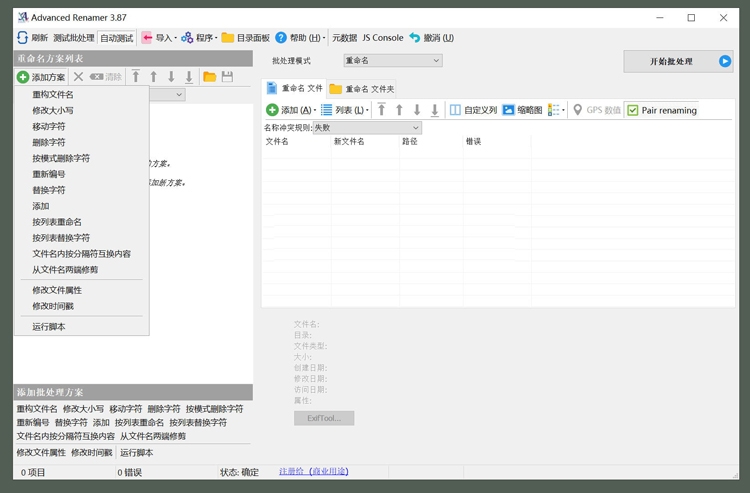 Advanced Renamer 是一个用于一次重命名多个文件和文件夹的程序。通过配置重命名方法,可以以各种方式操纵名称。在大量文件上使用多种方法设置批处理作业很容易。 通过 14 种不同的方法,您可以一次更改文件的名称,属性和时间戳。